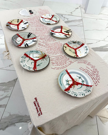 Embroidery on Ceramic and Fabric; Installation